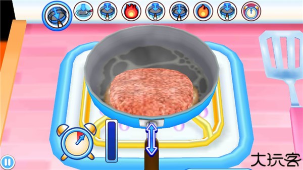 3、还有一点一定要注意,虽然每一步都有时间限制,但是并不是越快就越好的,在做汉堡排的绞肉环节中,如果转动速度过快,直接就把手柄摇飞咯。