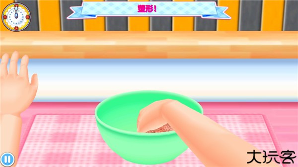 2、每一步都有时间限制,而有的步骤还有成功次数的要求。汉堡排中塑形这一个步骤就是要求大家完成三次才可以,在实际制作当中,时间到的时候完成几个就能获得几颗星星的评价。