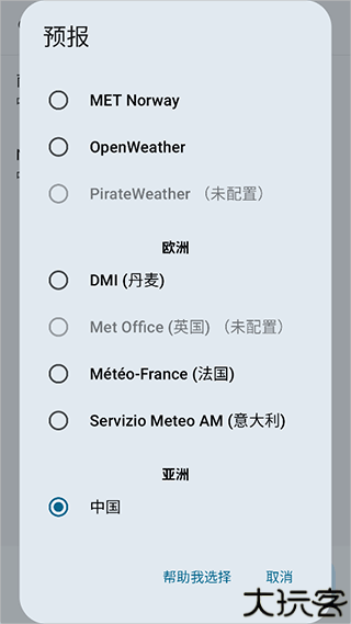 2、随后选择天气的数据来源,一般选择默认数值即可。
