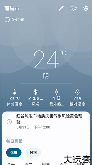 2、系统可自动识别用户的所在位置,快速展示对应地区的天气概况,确保天气信息及时。