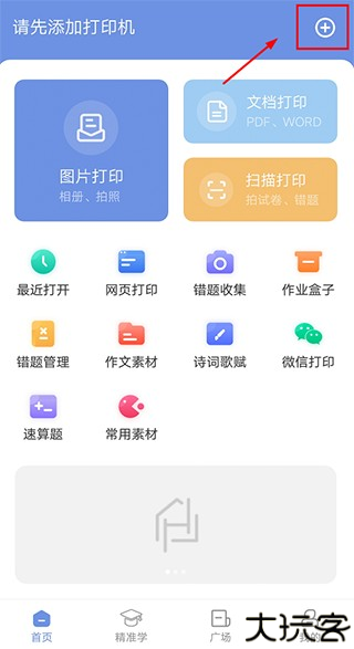1、打开汉小印打印机app,在去点击“+”来去更好的添加打印机。
