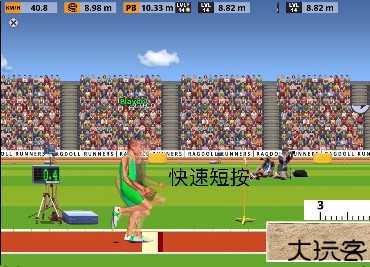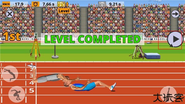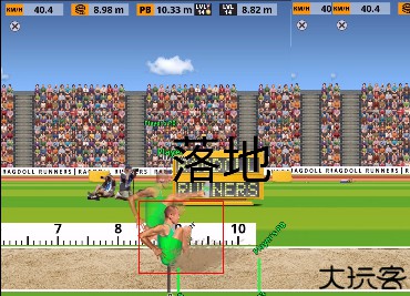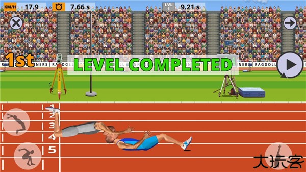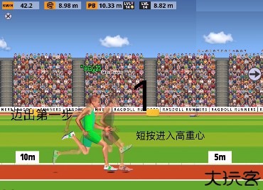 2、根据游戏中的障碍物或者运动时机进行有节奏的按键,并且在物理引擎的条件下控制好方向。游戏中主要操控运动员的两条腿,每条腿都会有一个按钮。