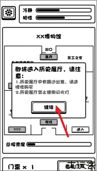 4、成功进入博物馆后,点击继续进入。