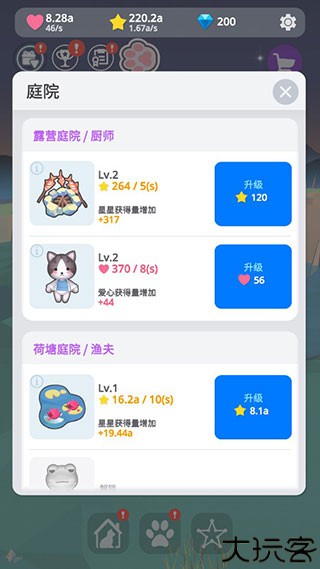 与精灵频繁互动解锁专属剧情,提升庭院功能扩展。