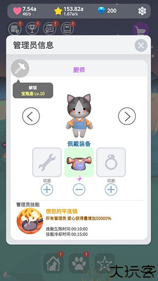 获取后为管理员搭配装备,不同装备带来加成属性。