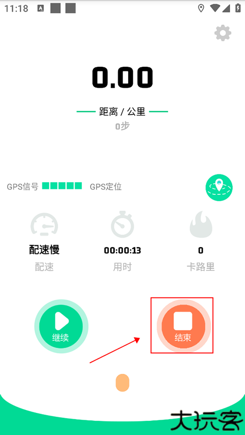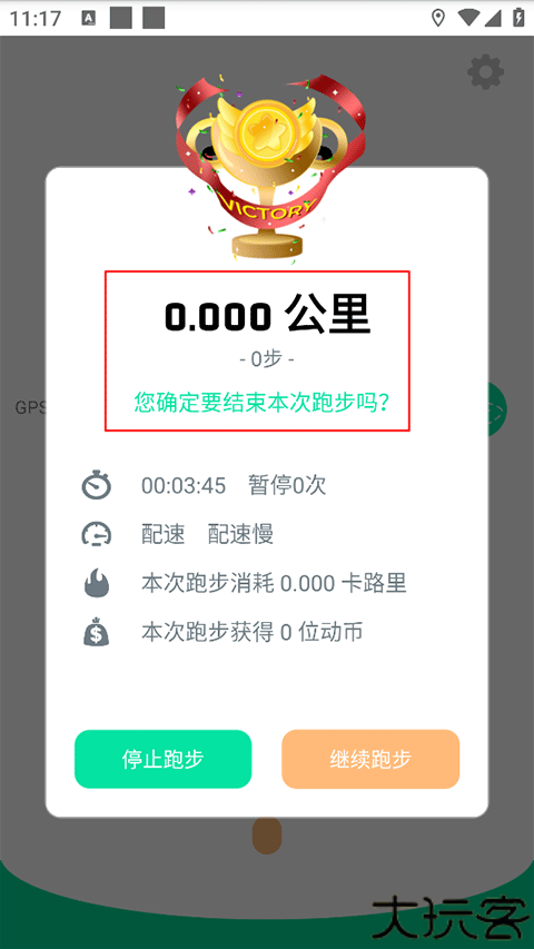 4、随后点击结束按钮,若用户还想跑则可以点击继续。
