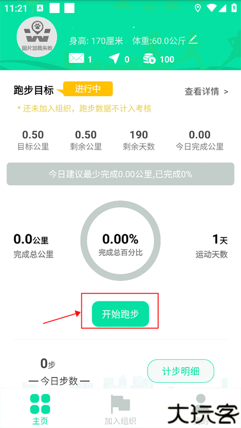 1、用户打开软件后,进入主页后并点击开始跑步按钮。