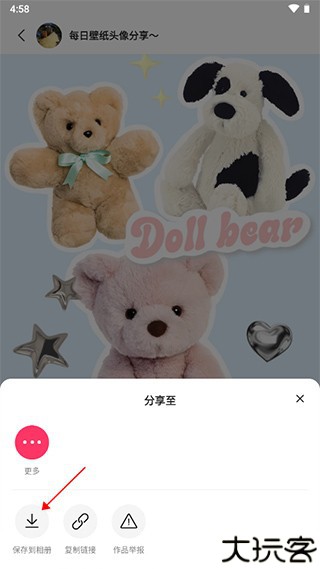 4、点击你喜欢的壁纸,点击分享,就会出现选项,下载的选项就这里。