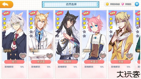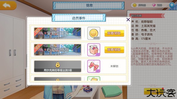 2、为他们换装换房和猫美男们探讨人生闲扯家常。通过提升店员等级就可以解锁该店员的专属事件。