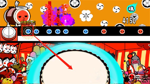 3、游戏内碰到红色鼓点,玩家需要点击敲击鼓面。