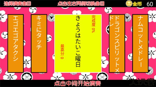 1、进入太游戏,可通过点击左右俩次切换不同的曲目,点击屏幕中间即可开始演奏。