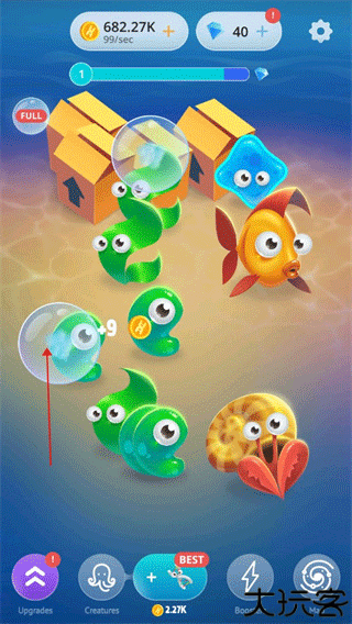 2、除了屏幕下方的按键可以增加以外,游戏中也会时不时的出现气泡,点击也会提供新的物种。