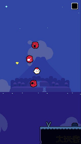 2、玩家还能点击屏幕不同的方向来进行跳跃冒险,向上滑动还能使用选定的道具。