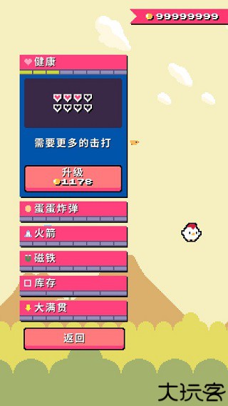 6、在游戏中获取的金币,玩家可以用来升级或是解锁主角的一些能力,比如吸金币、加生命啊等等之类的,玩家还可以用来购买游戏中的其他人物造型。