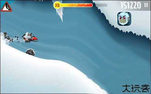 出现几率仅次于企鹅,刚骑上的时候跑得速度很快,但受到一次冲击后,就会变成滑雪模式,在滑雪模式下,假如再擦到一头企鹅,就会将之带在身边,可以为你抵消一次冲击。不过你最多只能带一头企鹅,加上雪人可以为你抵消两次冲击。不过雪人动作比较迟缓,你假如想借助它来翻跟头往往结果会是摔一个狠跤。