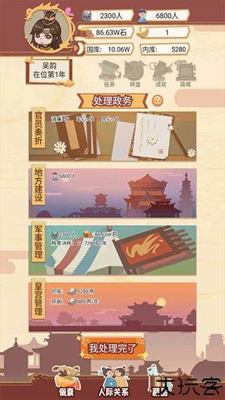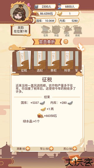 2、需要处理各类奏折,获得国家经济收入,可以对皇宫内的人进行调整。