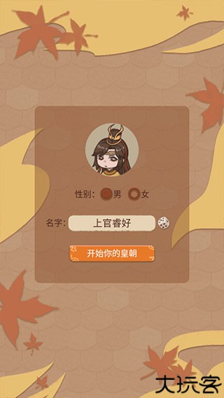 1、安装好游戏后,可以自行选择昵称以及性别,开启你的皇朝。