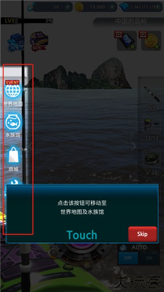 4、左边按钮可切换地图、水族馆、商店。