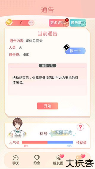 6、通告则是给予玩家们了一些额外的任务,完成之后可以获得一定的人气值以及其他资源奖励。