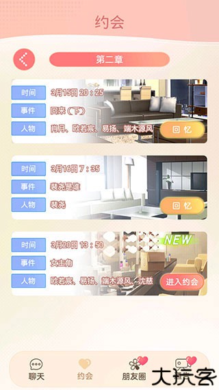 2、约会界面则是大家所熟知的剧情关卡了,进入某一章节即可体验这一部分的剧情发展。