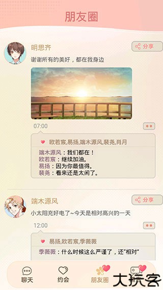 5、朋友圈界面则是为玩家们展现出游戏中各个角色的生活动态,玩家可以对这些动态进行分享点赞或者评论。