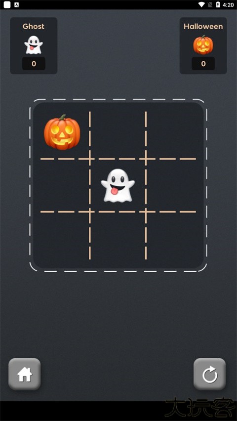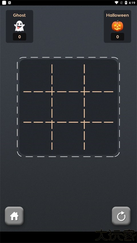 3、两个玩家轮流在格子里放标记,一方是X,一方是O,轮流来下有趣无比。