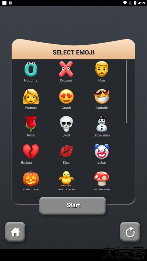 2、然后选择玩家要的emoji,然后点击start开始游戏