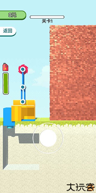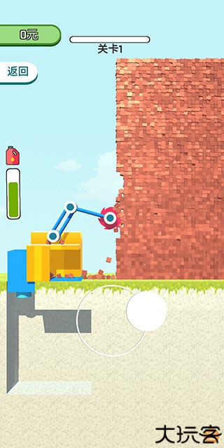 2、透过拖动下方的虚拟轮盘来控制拆迁机器拆除右侧建筑。