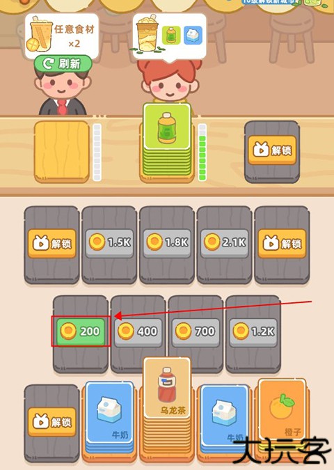 4、收集卡牌:透过完成订单,玩家可以解锁新的食材和奶茶款式,逐步打造梦幻奶茶店。