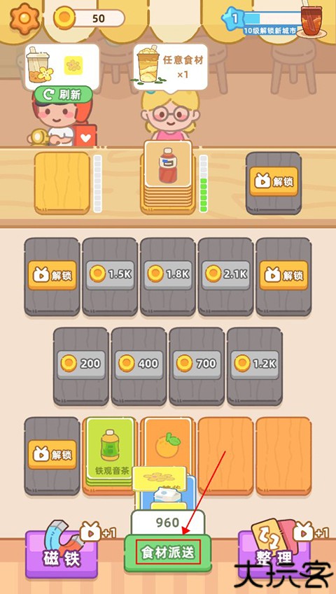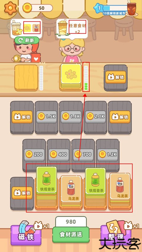 3、玩家透过完成订单可以获得金币,在拥有足够的金币后可以解锁其他额外卡片格子。
