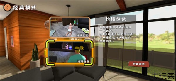 3、这里扮演爸爸进入进入游戏就会出现在房子里,这时候就需要尽快的找到宝宝,保护他,不让他作死。