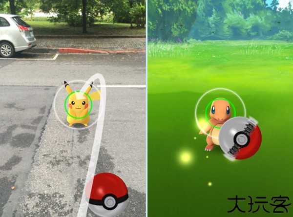 3、点选自己的神奇宝贝球滑向神奇宝贝就可以开始抓取了。点击宝贝球可以看到中间有个绿色圈圈不断由大而小的出现,如果能够将宝贝球掷入圈内,就能得到额外的经验值。如果按着宝贝球不断画圈,宝贝球就会开始转动,这时你丢出宝贝球就会变成抛物线,如果成功抓取一样会有额外的经验值喔!(建议关闭及时AR 模式比较好抓取也比较省电)