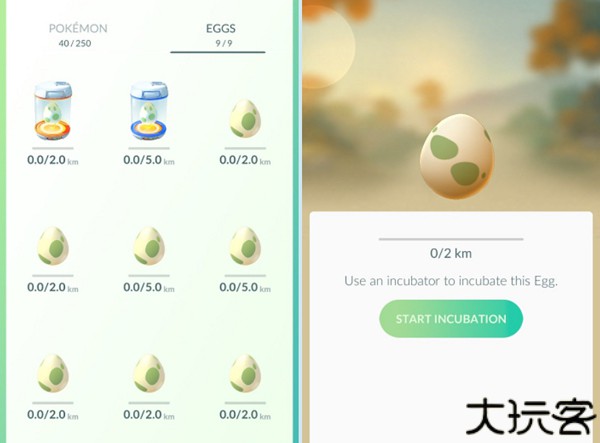 7、获取神奇宝贝的方法除了收服、进化以外,还有孵蛋这个方法。当在宝可梦驿站获得宝可梦蛋后,可以点选在自家图鉴左划查看,蛋有分成2km 、5km 、10km 三种,距离越远的蛋孵出来的神奇宝贝越稀有。一定要使用孵蛋器才能孵化神奇宝贝。每种孵蛋器一次只能敷一颗蛋,除了初始无限孵蛋器,也可以到商店购买高级孵蛋器。