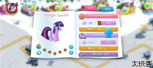 2、剧情引导:游戏以剧情为主线,帮助小马Twilight重建Ponyville,打破梦魇之月的黑暗。