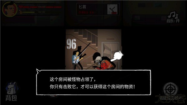 6、有怪物时,只有击败了,才能搜集房间里的物资。