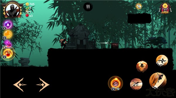 4、地图中还藏有宝箱,通过手里剑的攻击可以获得金币。