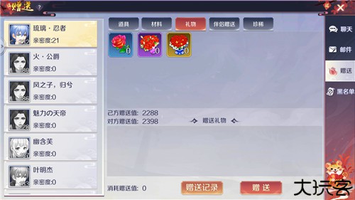 2、可以通过赠送礼物来提升,只有赠送玫瑰才可以提升亲密度。