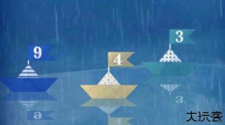 2、接着往里,会在房子左侧发现漂浮着的三只带着数值的纸船。