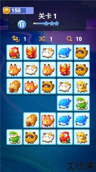 2、碰到两个相同的动物图案就可以点击消除。