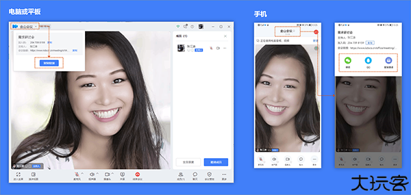 4、会议界面点上方图标,即可快速查看与转发会议信息。