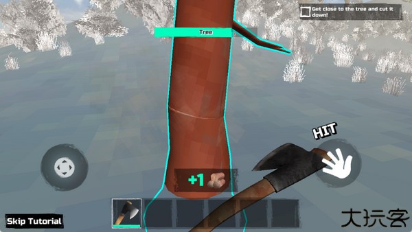5、装上斧子后走到树旁边,就可以开始砍树了