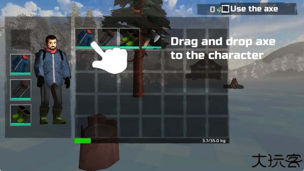 4、然后一直往前走,可以得到一把斧头,打开背包装上吧