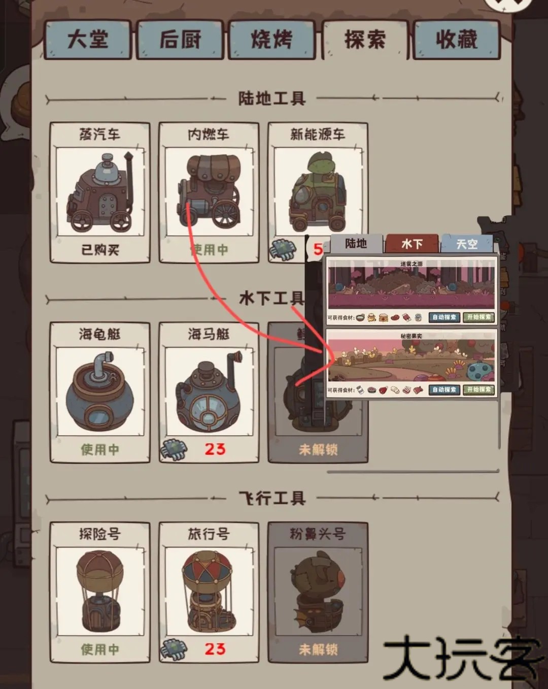 2、探索需要升级设备才能解锁新的区域。