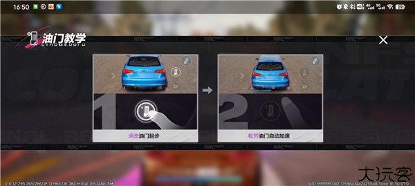 6、点击油门起步催油门,松开油门后汽车自动加速。