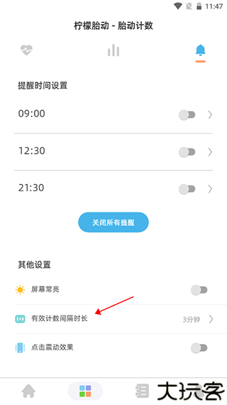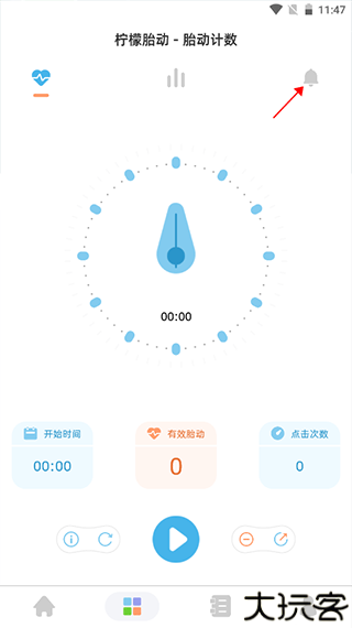 2、在胎动计数界面点击【铃铛】图标。