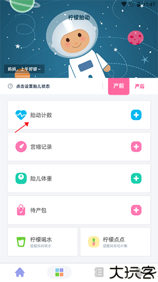 1、打开柠檬胎动,点击【胎动计数】。