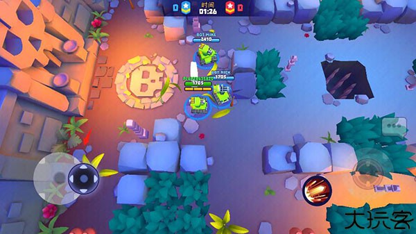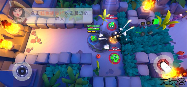 1、首先进入TanksALot游戏中,拖动蓝色操纵杆移动坦克。