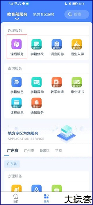 1、打开进入登录在去输入对应的账号密码进入应用。选择“课后服务”进入。