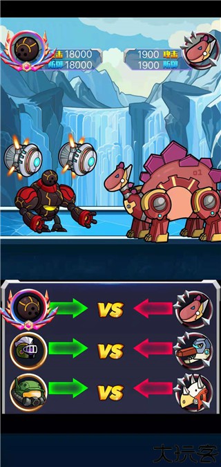 1、多只机械恐龙机甲在线,独家释放专属技能,随机匹配对手展开战斗。