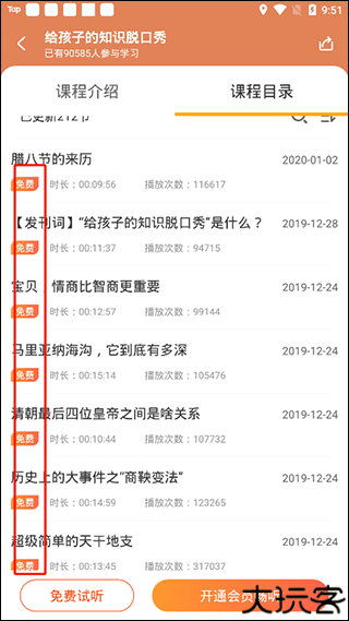 4、每节课程标明是否免费、会员专享或需付费购买。
